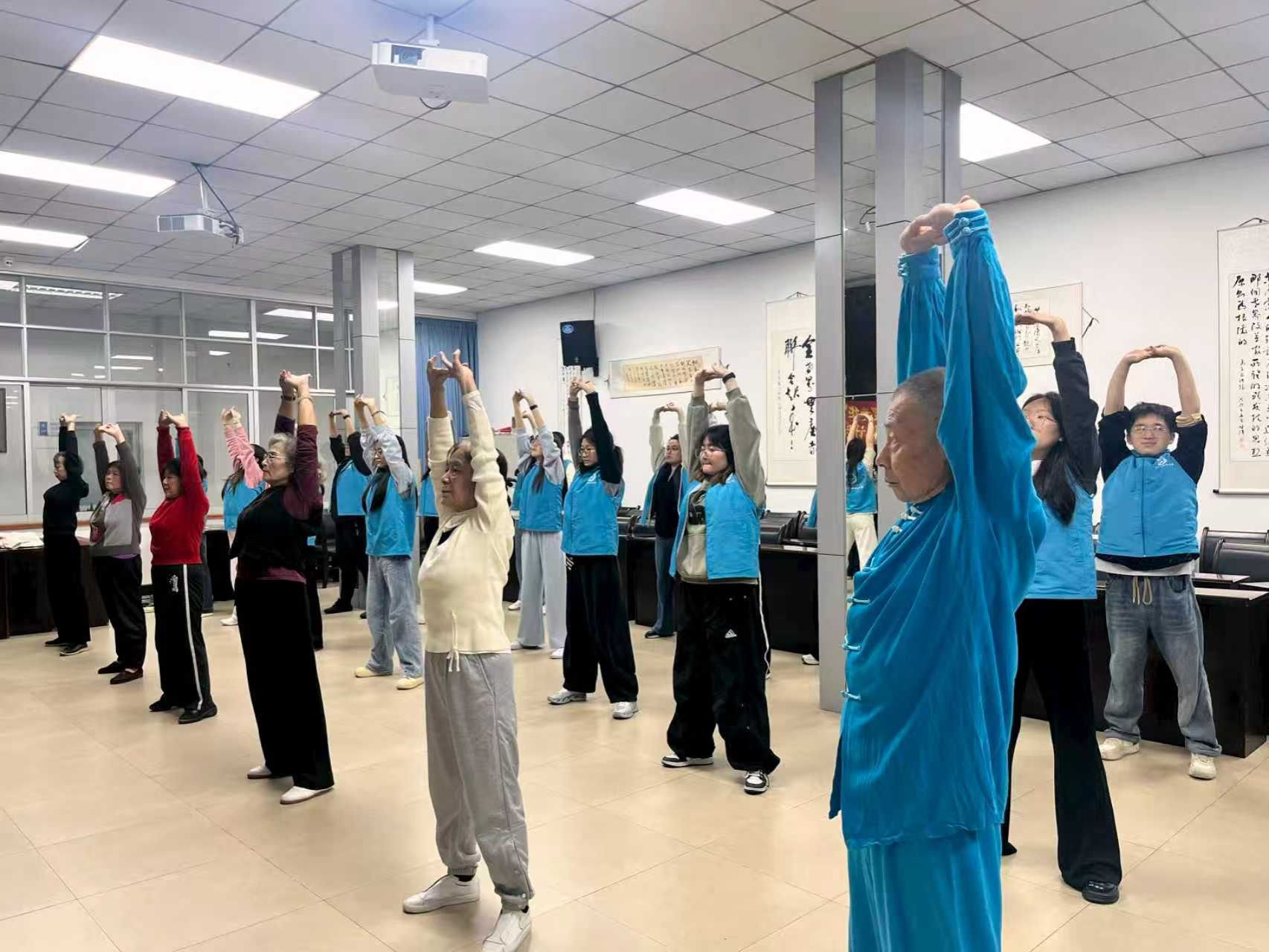 团委志工部和离退休工作处,在光华校区退休活动中心举办“乐伴桑榆,情暖光华”第四期八段锦教学活动。