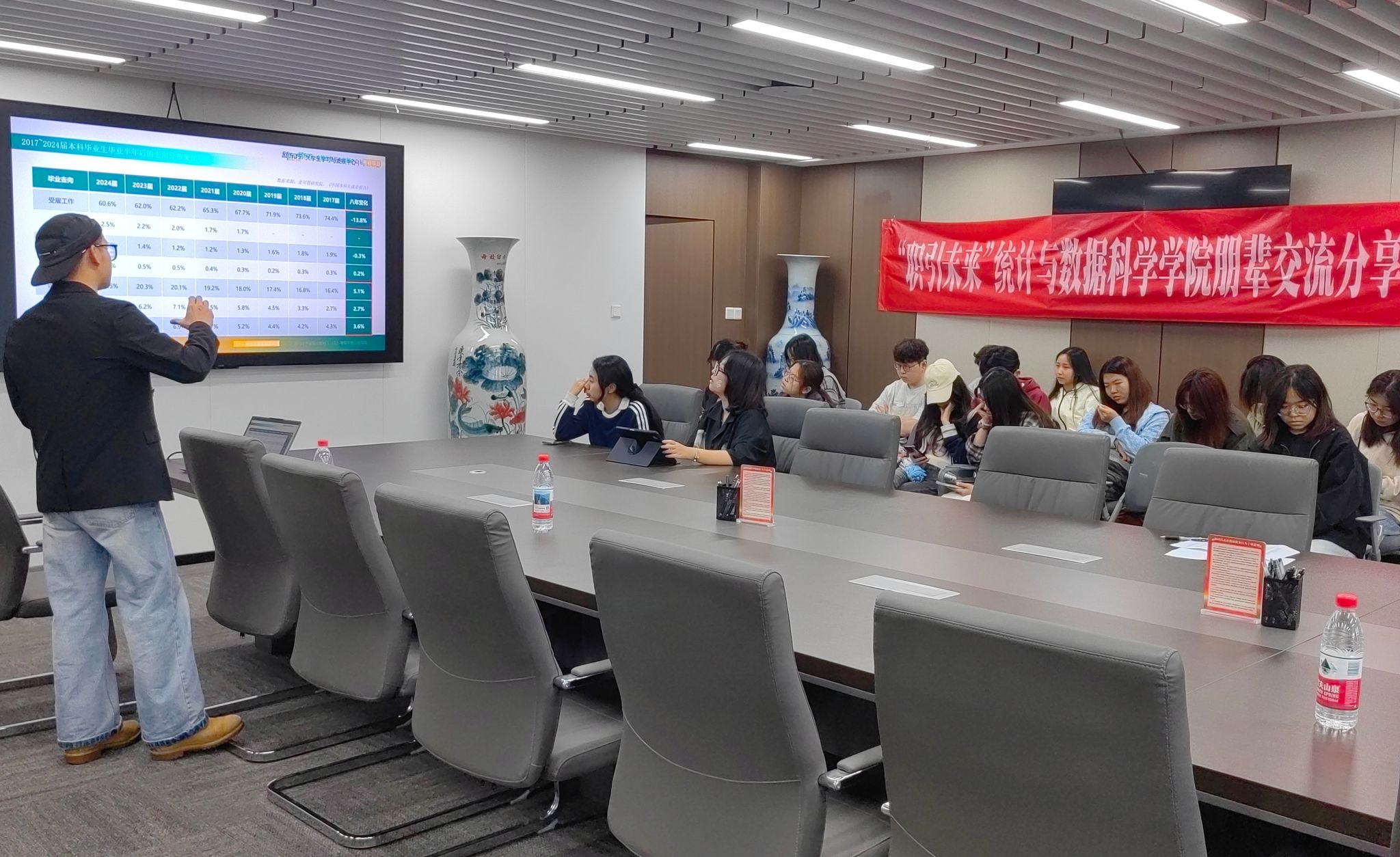 交流会还邀请到了新东方大学生学习与发展中心的讲师,他围绕考研价值、发展前景、政策要点展开讲解,解读国家线、自主划线等关键信息,并结合麻豆传媒